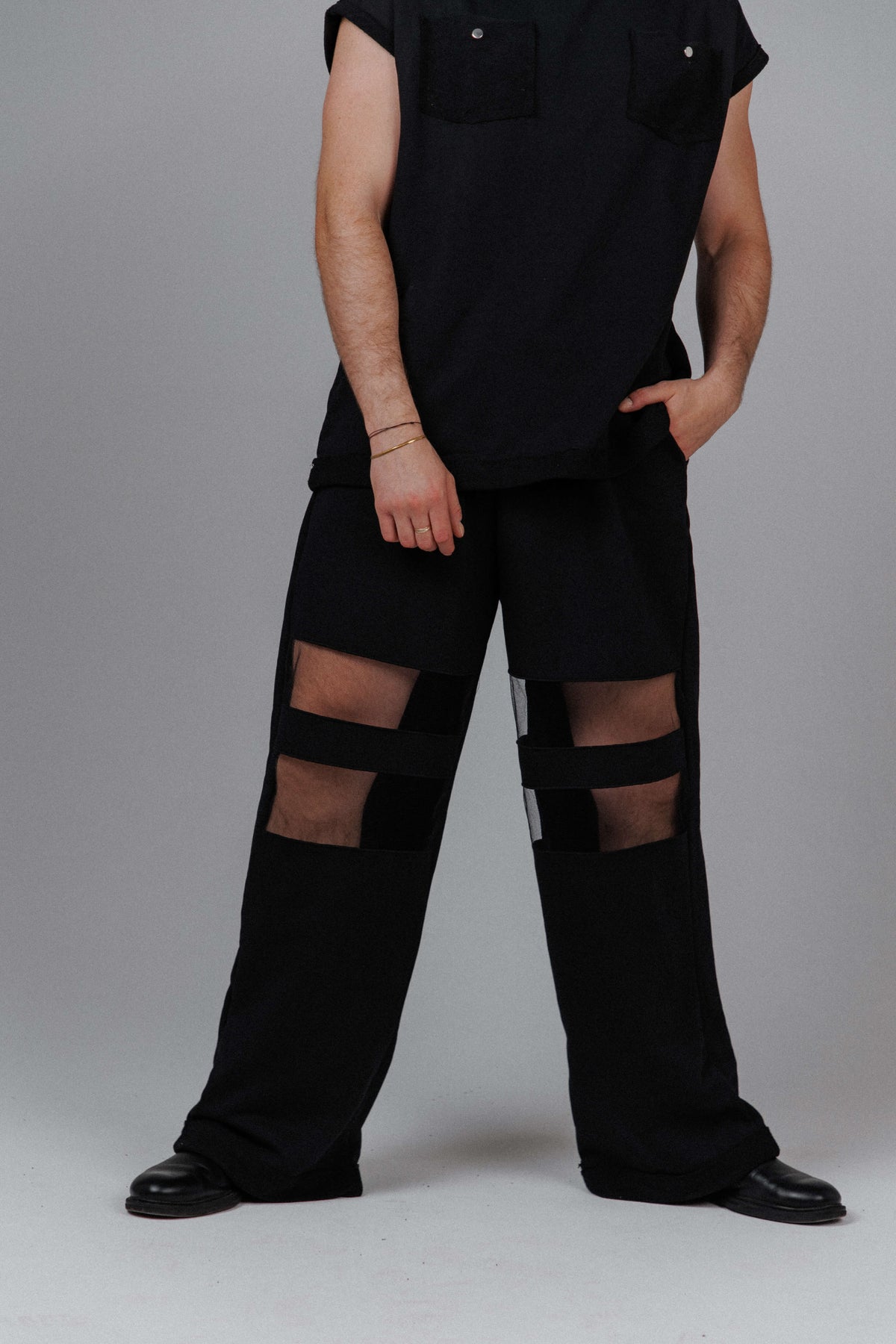 Striking when worn together as a complete Eclipse look or styled apart to build your own dark uniform. Each piece can also be purchased separately. Handmade in limited quantities, this two piece set is made for everyday wear, created for those who prefer their clothing to speak in shadows rather than noise.