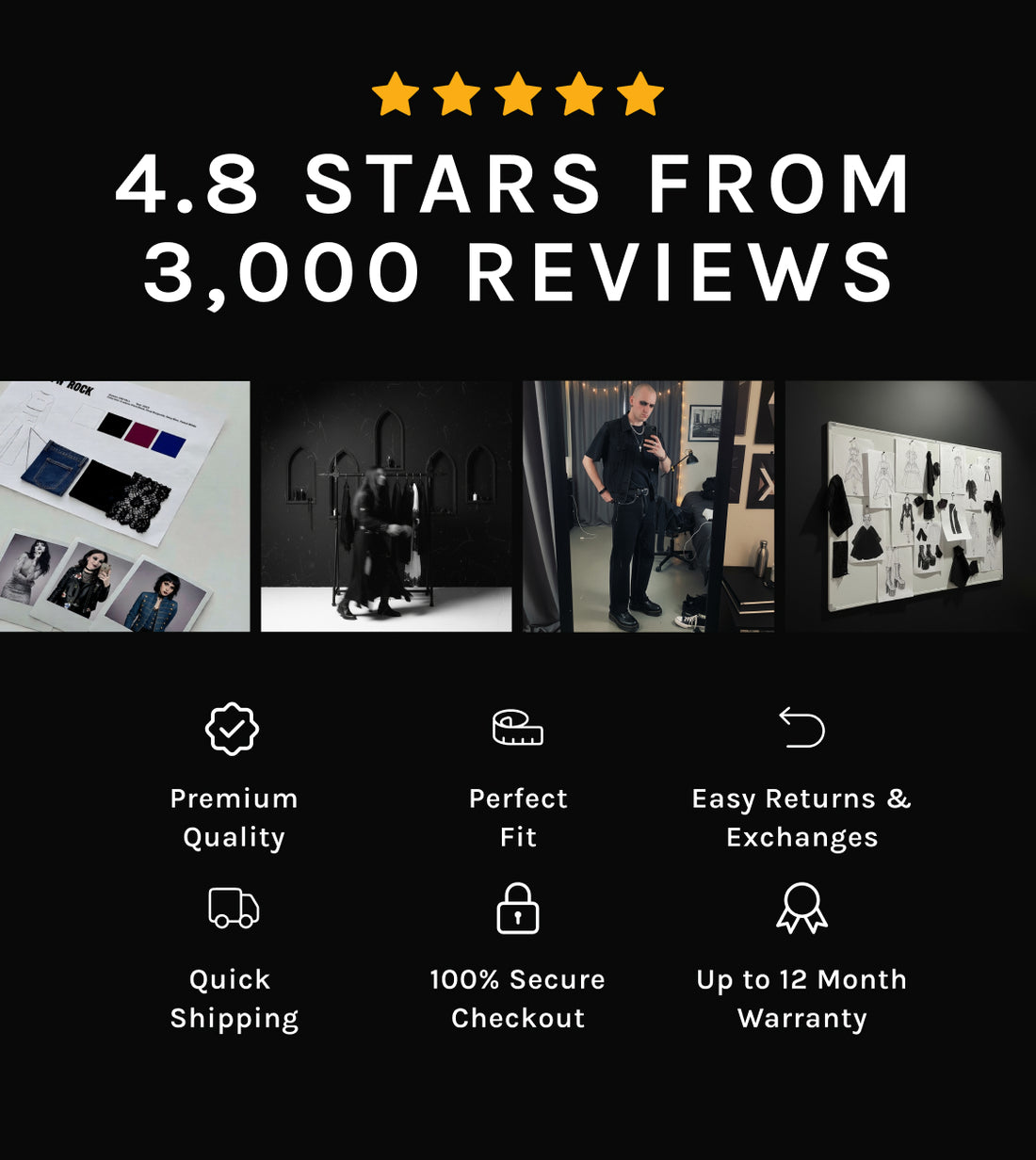 We focus on high-quality materials, unique in-house designs, and affordable pricing. Goth N’ Rock delivers expressive, alternative fashion without the premium price tag found at larger goth brands.