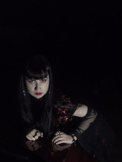 A traditional Chinese Cheongsam/Qipao Mandarin traditional style satin dress with a dark floral blossom design. A flattering and stylish piece with a sensual satin finish.